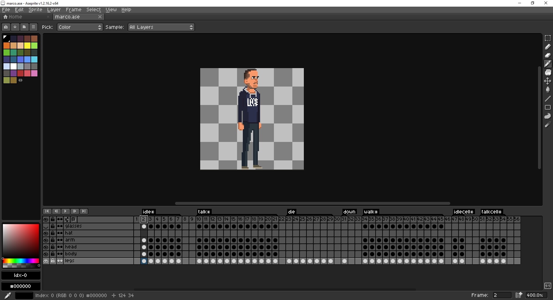 I do the same things for actors - I draw them in Aseprite with layers and animation (and timing) - and I convert them to an atlas file with the same characteristics.