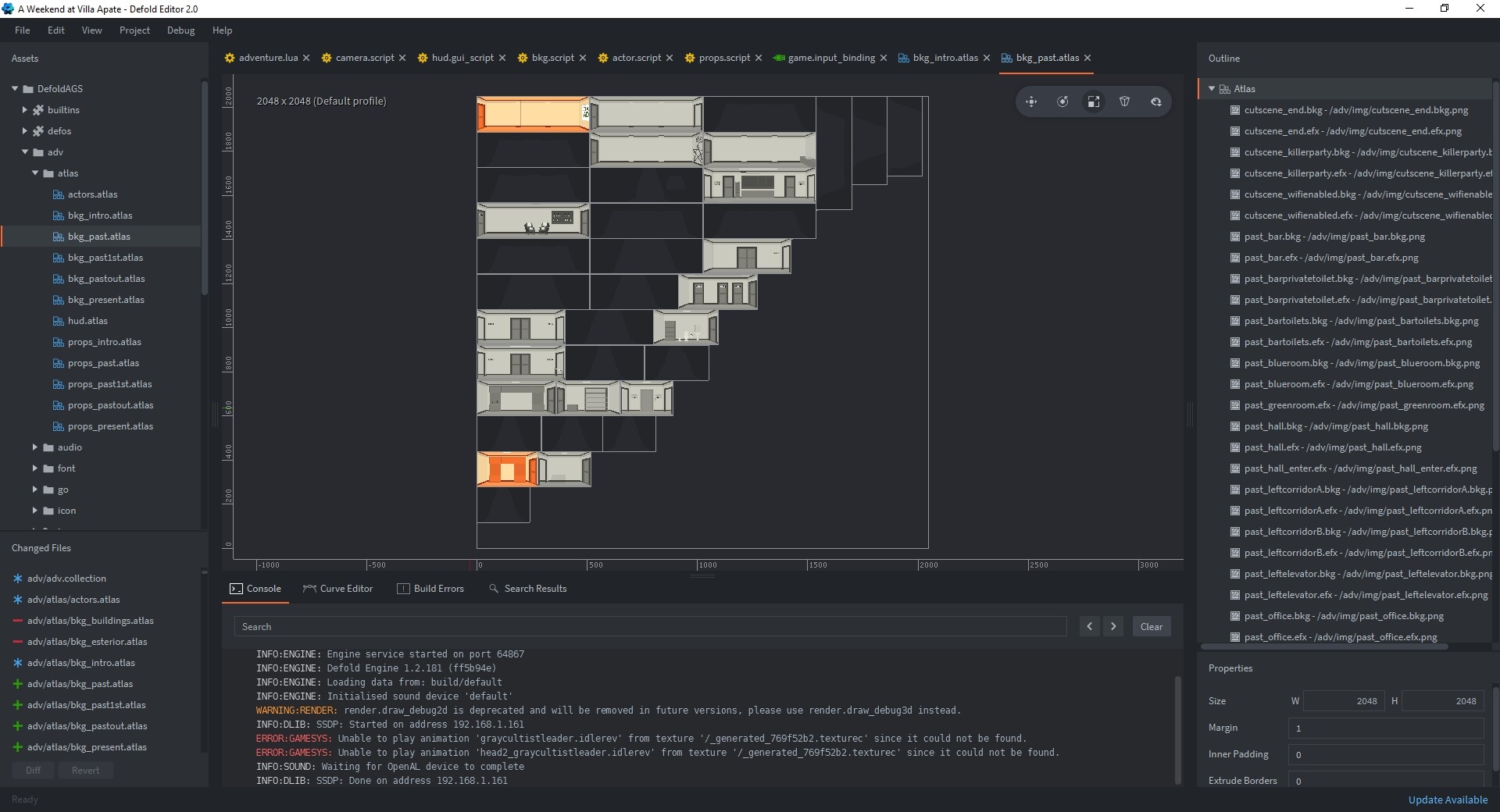 Well, I don’t work INSIDE Defold. I mean, Defold is the PLAYER of the game, but it’s scripted elsewhere because I find that adventure game needs a specific structure AND because I’m used to working with Aseprite as a graphic editor. So I’ve got a source folder with my scripted game, and its resources and a Defold project with my Lua code. I also have a tool that creates Defold’s elements which is possible and “easy” because Defold stores everything as text files.