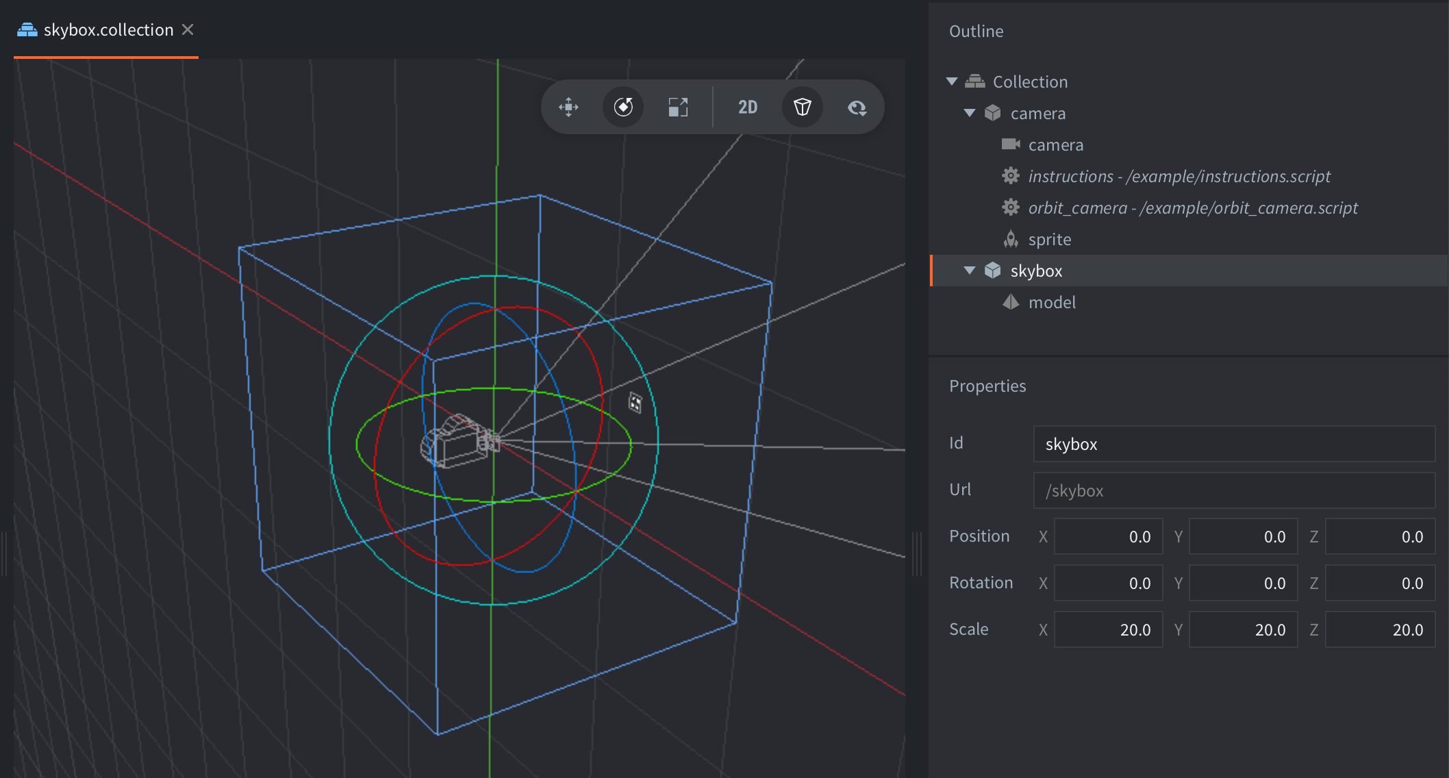 This example shows how to create a skybox. A skybox is a technique that makes the scene look bigger and more impressive by wrapping the viewer with a texture that goes around the camera 360 degrees.