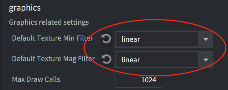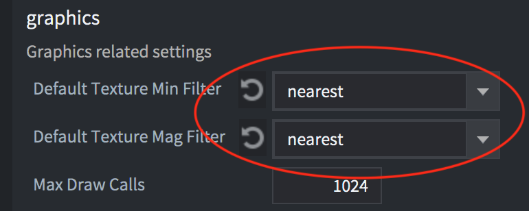 图形看起来模糊了!这是由GPU渲染时从纹理中采样放大的图形的方式引起的。game.project文件中Graphics部分下的默认设置是linear:
