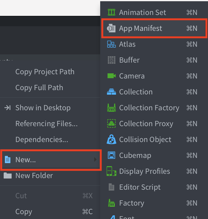 在 game.project 中,将清单分配给 Native Extensions -> App Manifest。
