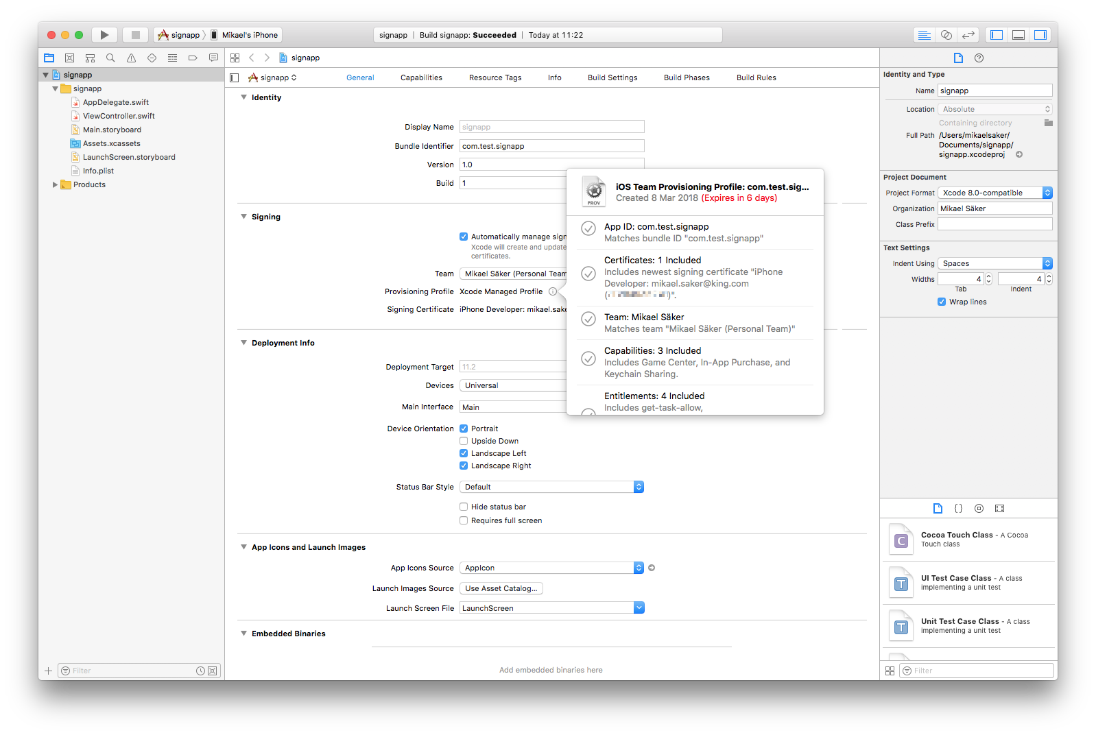 在 iOS 模拟器上测试游戏时,你 必须 取消选中 Sign application 复选框。你将能够安装应用程序,但它无法启动。