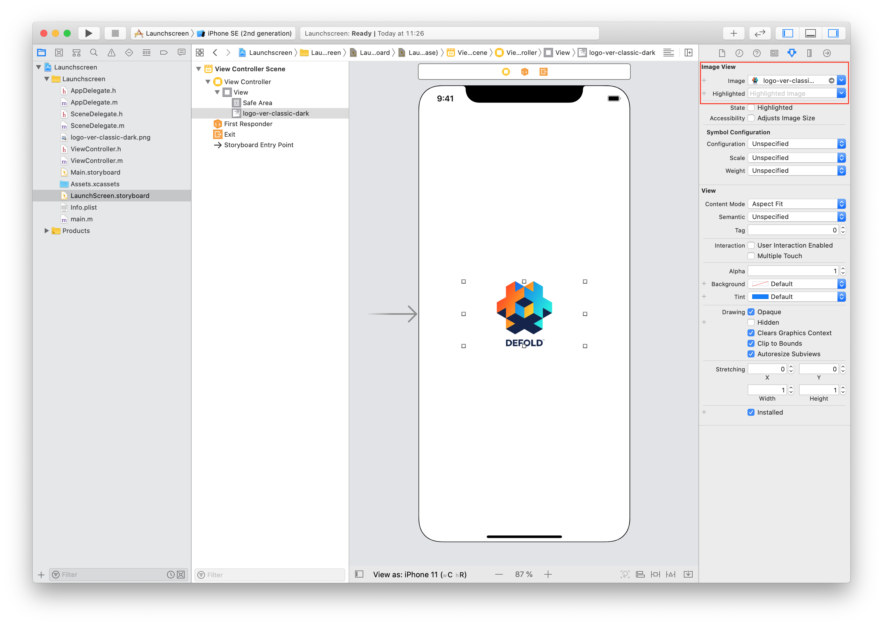 如果你在故事板中使用图像,它们不会自动包含在你的 LaunchScreen.storyboardc 中。使用 game.project 中的 Bundle Resources 字段来包含资源。